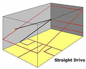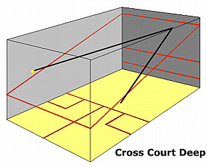 Straight deep. More difficult to execute, but a very safe and defensive return. If hit accurately and tightly it