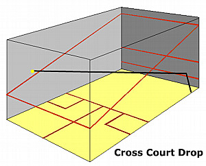 Crosscourt drop - extrememely risky, only useful once per game when opponent is getting lazy and hanging back and not watching you return serve.