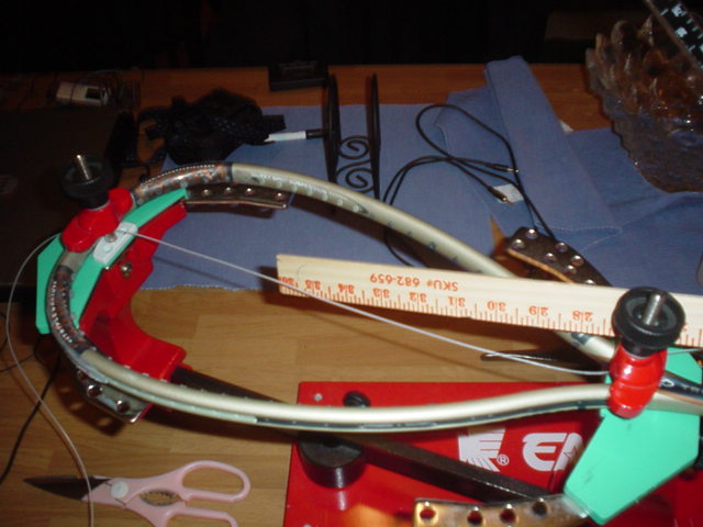 with an already tensioned main string. Sometimes it may be difficult to thread the string through the tie-off grommet. You can use an owl, or a needle shaped tool to wedge into that hole to try and