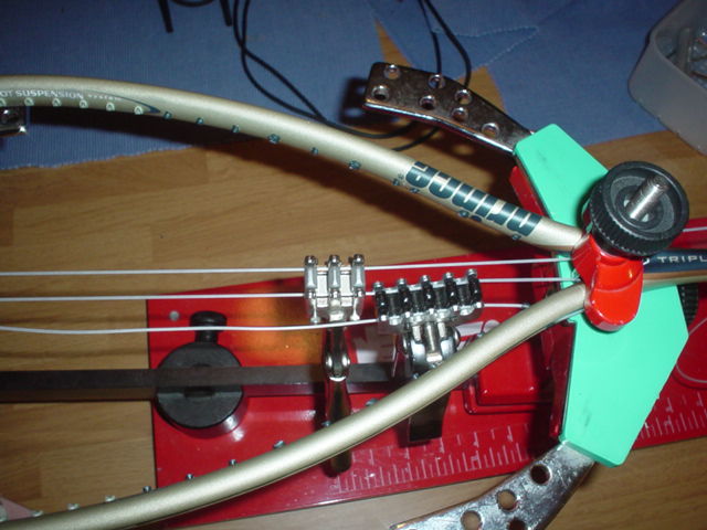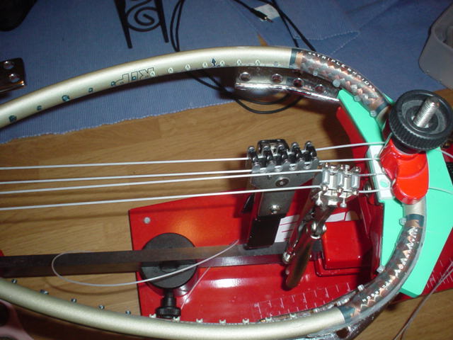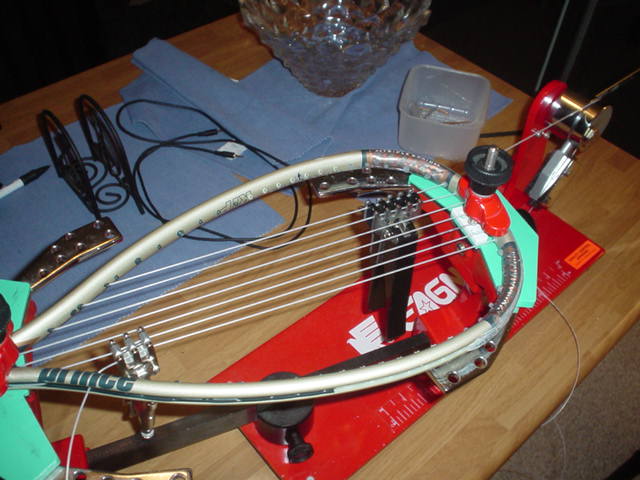 Now the remaining mains are a piece of cake. Just alternate tensioning one main on each side. In other words string one main, tension it, then string the other main